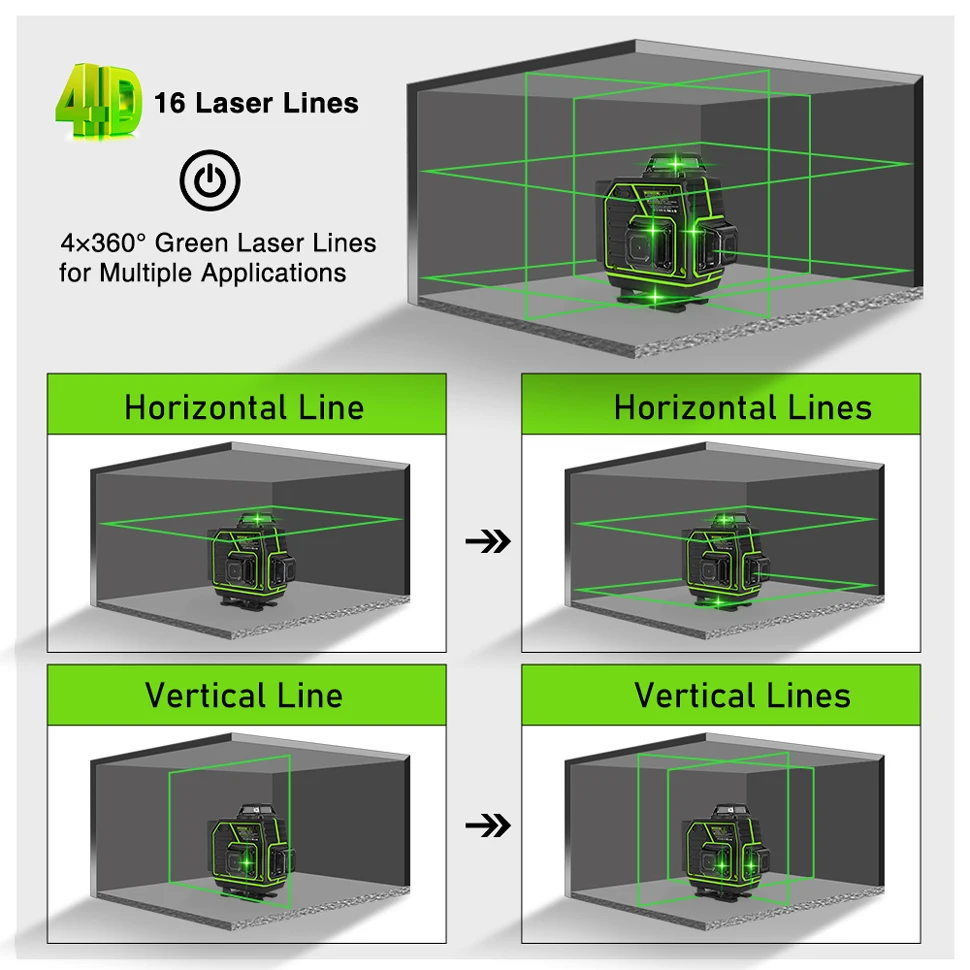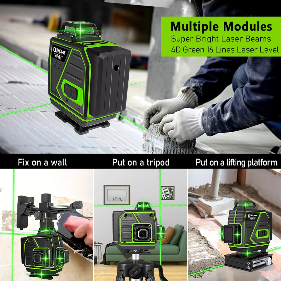 Clubiona 16 Lines Laser Level With Li-ion Battery Professional Decoration Self-Leveling Super Powerful Green Beam Nivel a Laser