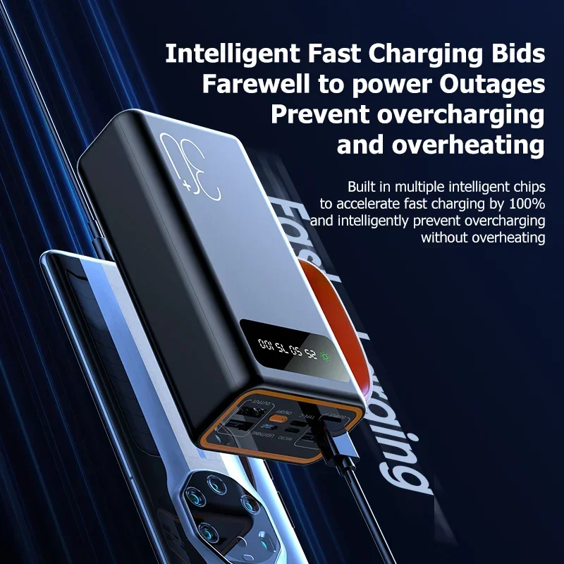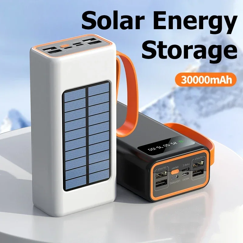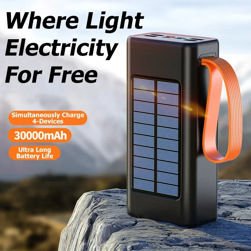 Lenovo 100000mAh Thicken Solar Power Bank Ultra capacity Built-in Cables External Battery LED Light Power Bank For iPhone Xiaomi