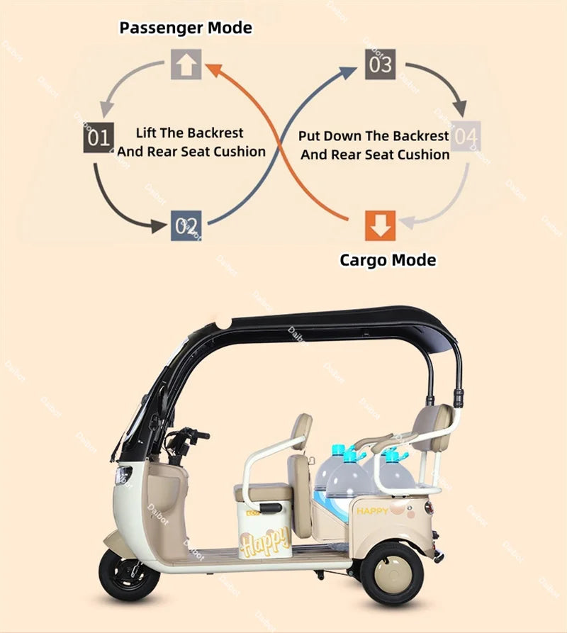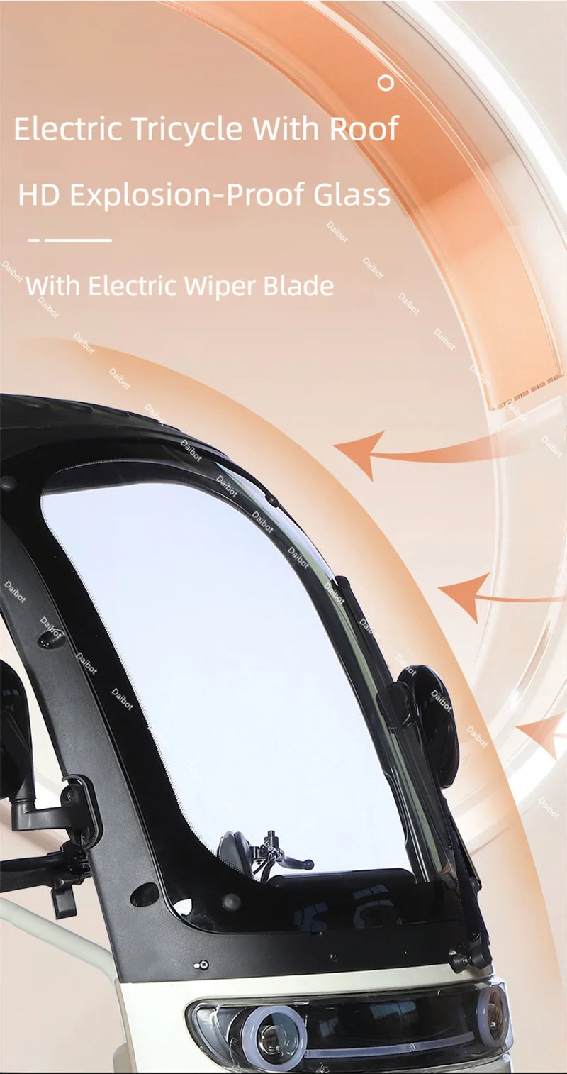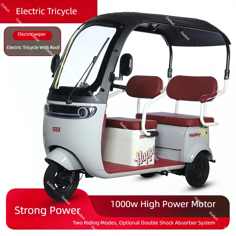 Passenger Electric Tricycle Cargo With Roof 3 Seater Parent Child Electric Scooter For Elderly 1000w 72v Family Mobility Scooter
