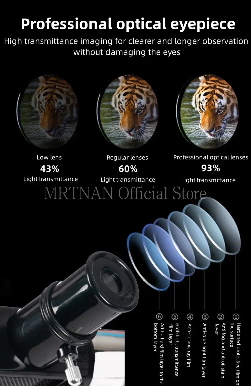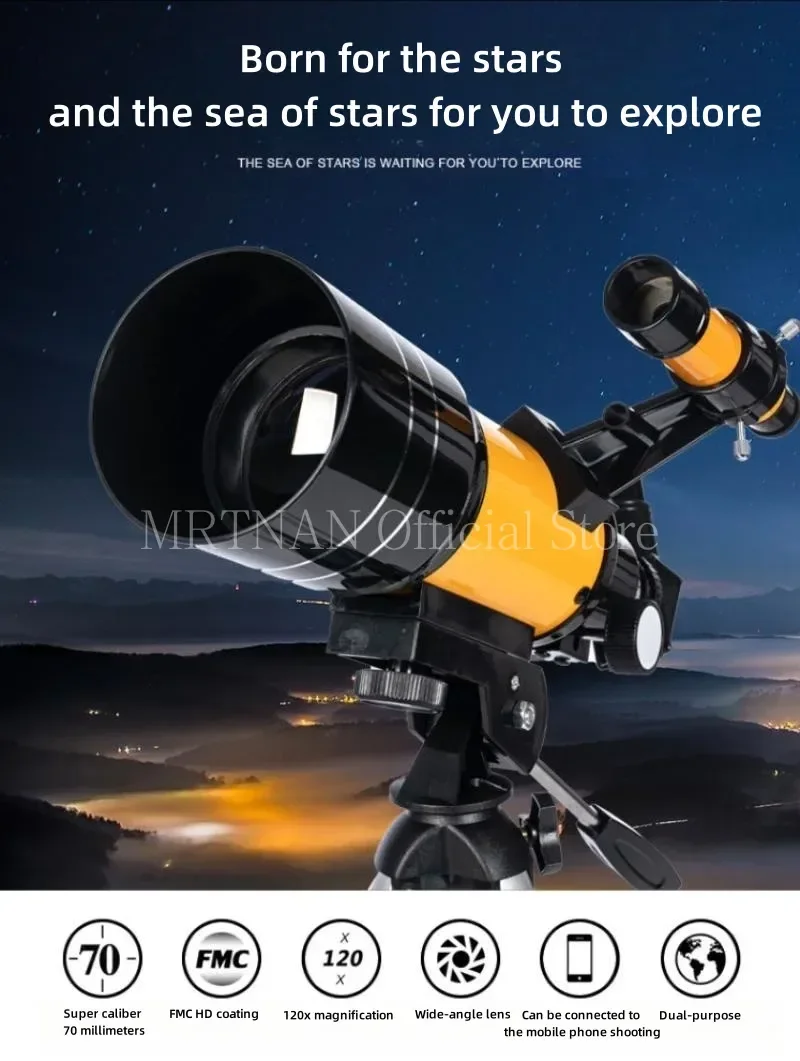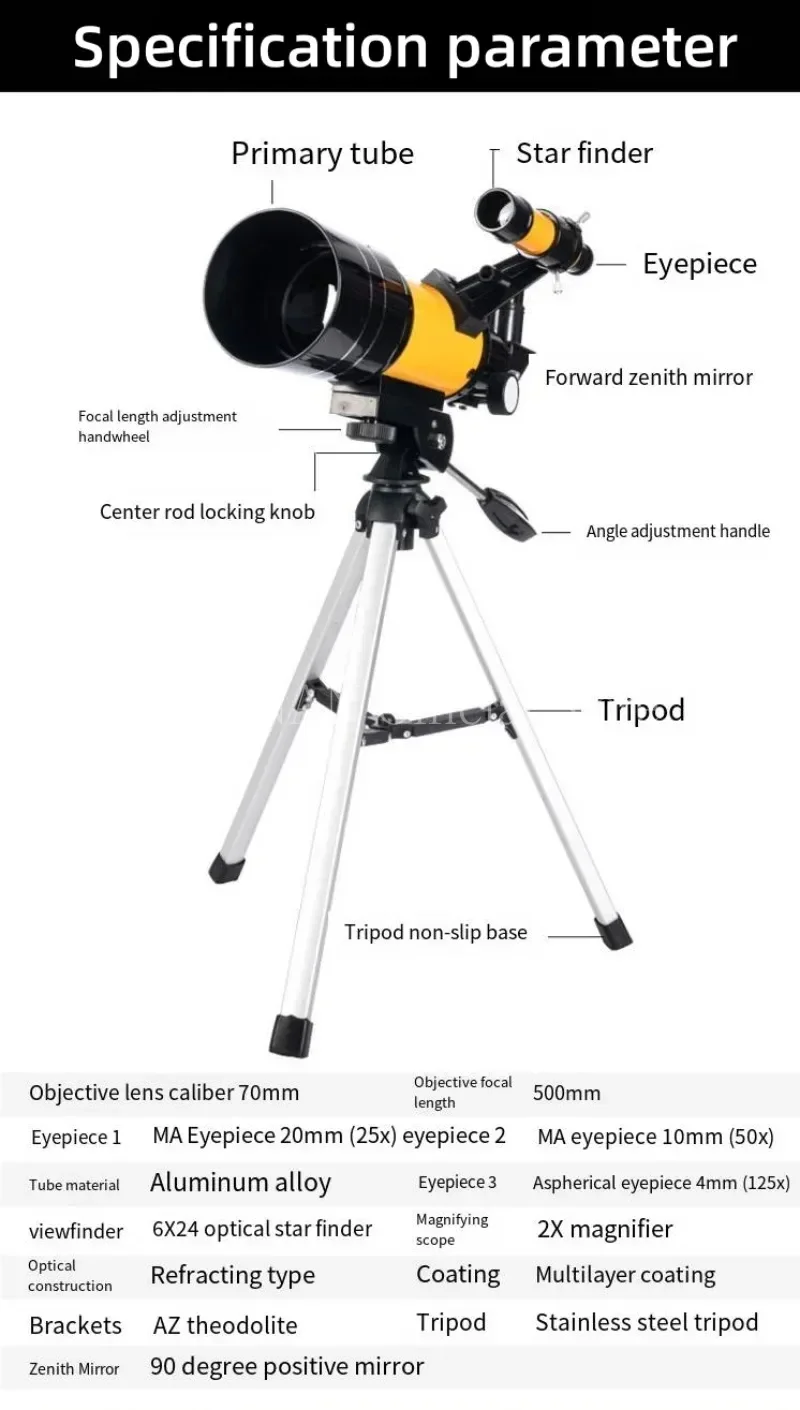 Designed for moon watching, star tracking, outdoor sightseeing, and long-range observation, this telescope provides professional-grade performance in a compact, portable design.
