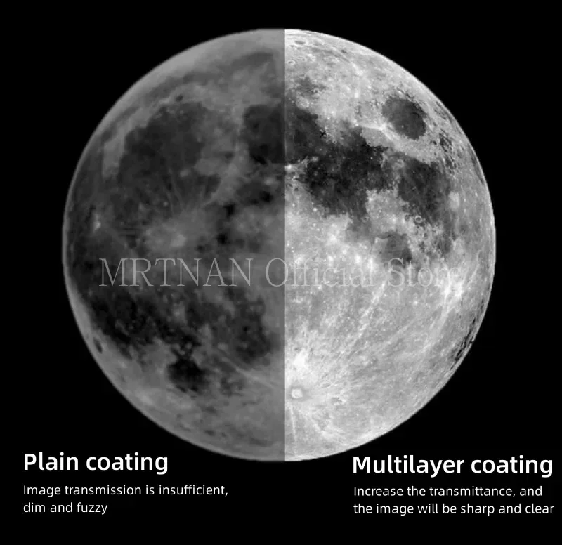 Enhanced optical lenses provide excellent performance in low-light conditions (not infrared), ideal for nighttime stargazing.