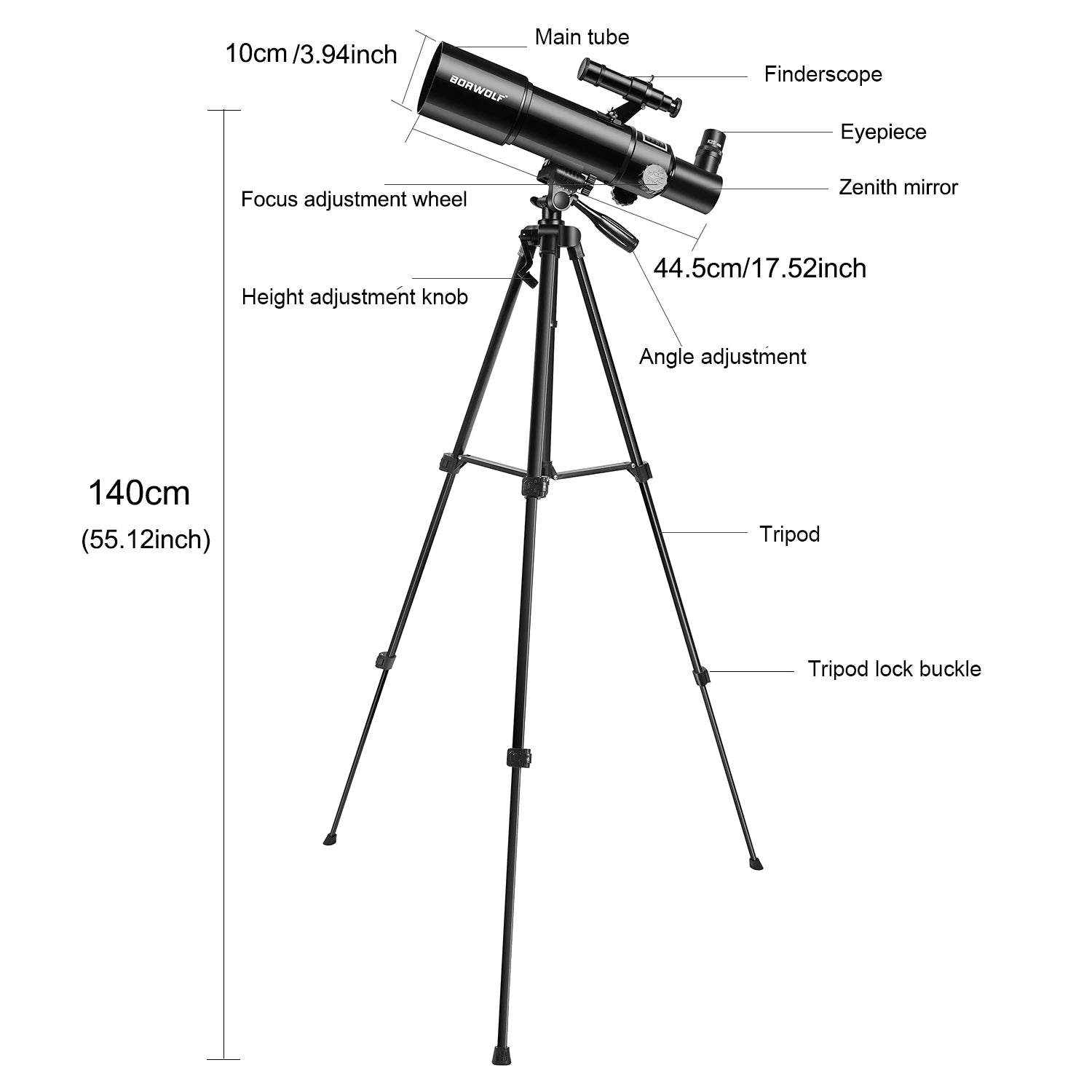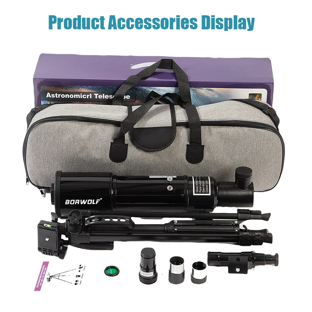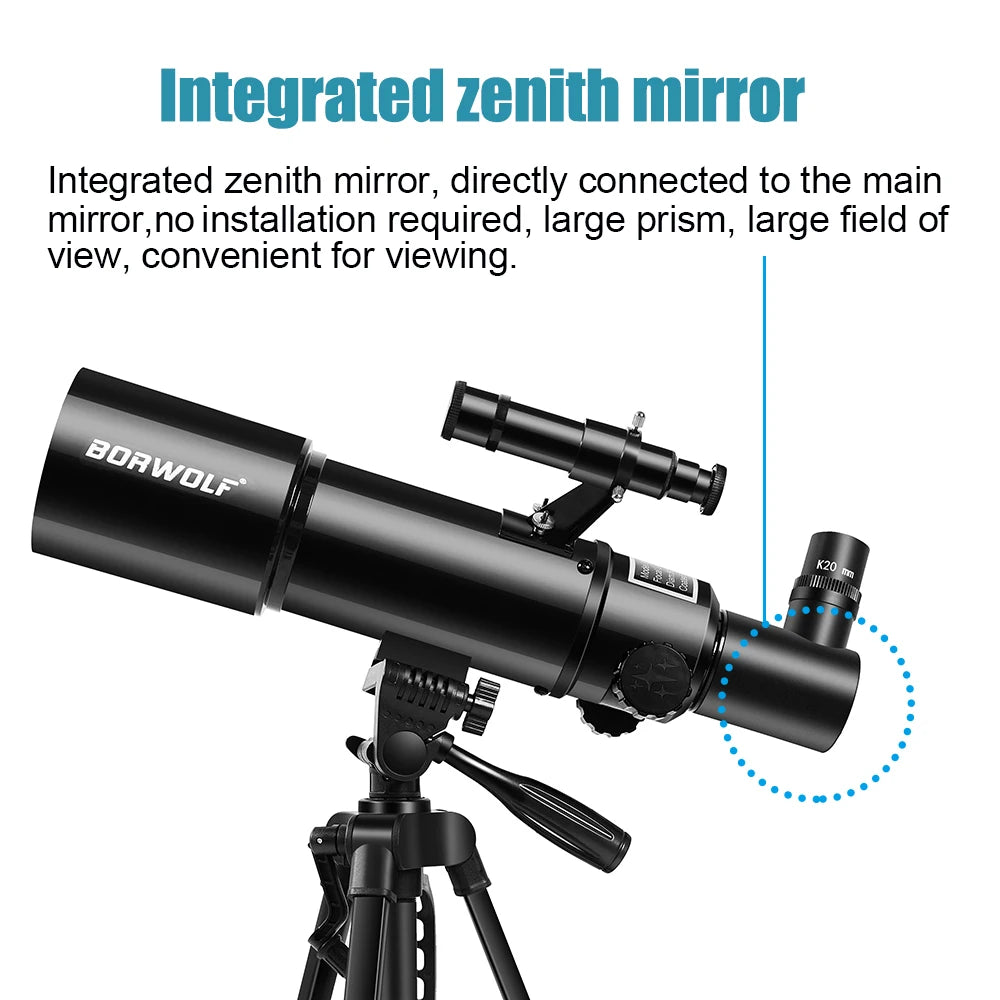 BORWOLF AZ80400 Astronomy Telescopes for Adults, 80mm Aperture 400mm AZ Mount 250X HD for Moon Stargazing and Bird Watching