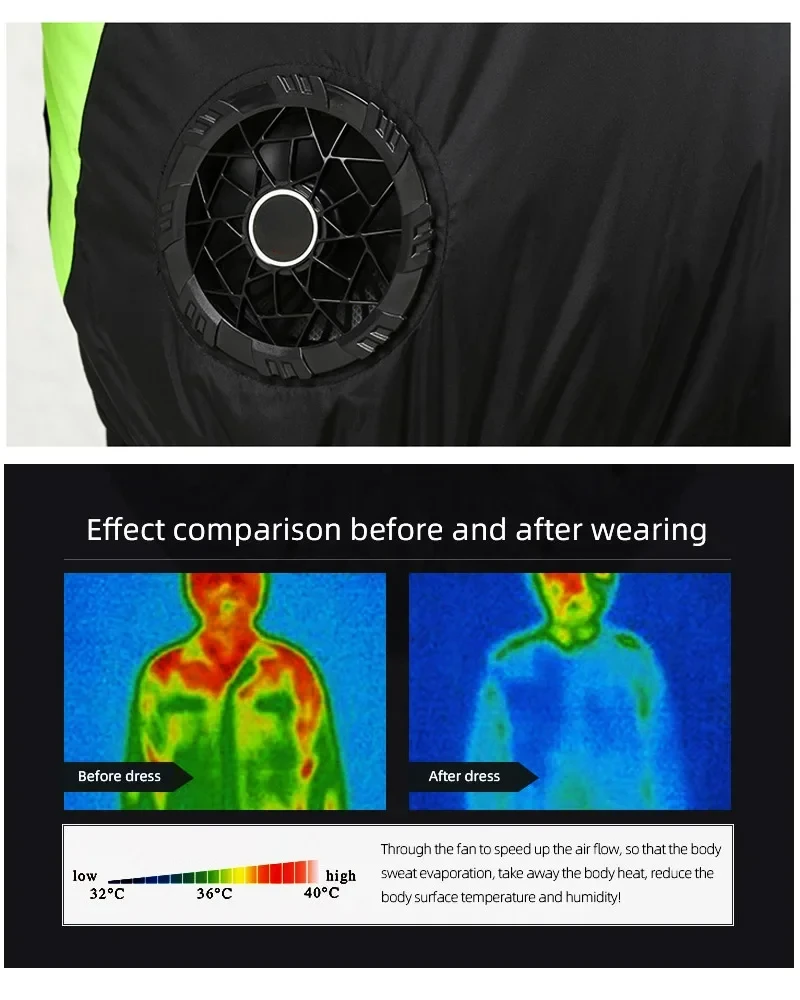 ◆ Built-In Dual Fans – Efficiently circulate air throughout the vest to lower body temperature by up to 20%