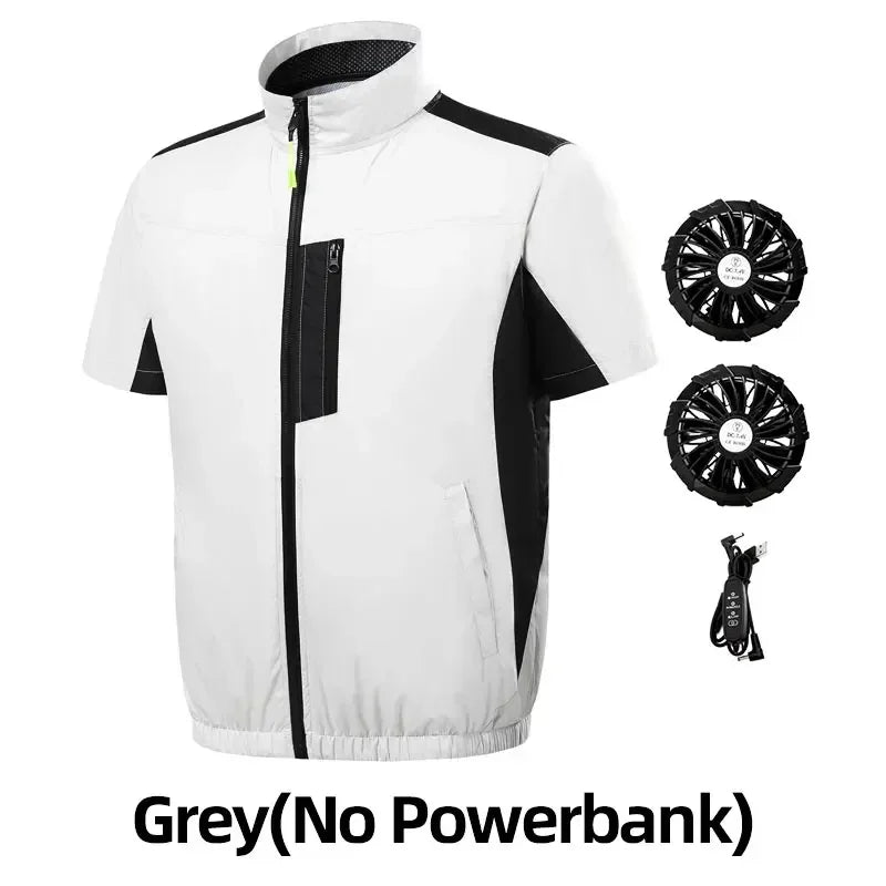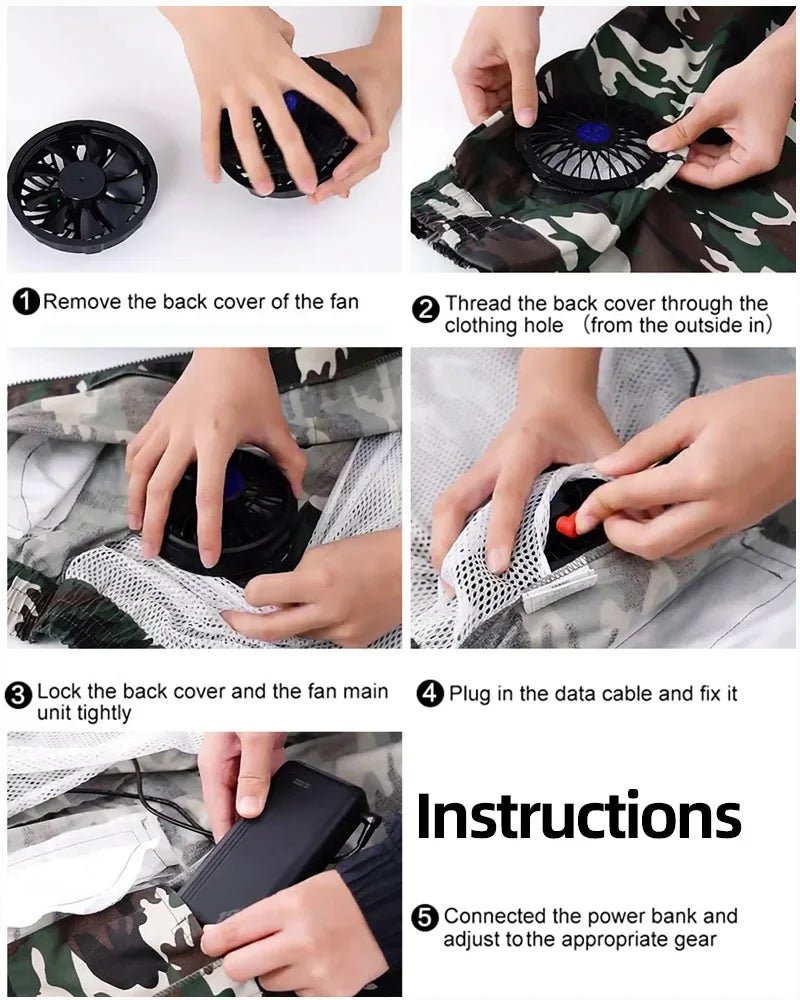The Fan Suit Is A Type Of Clothing With Two High-Speed Fans On Both Sides Of The Waist. It Is Powered By The Powerbank Of The Mobile Phone. The Fan Circulates The Air Outside The Body To Make A Large Amount Of Air Flow Along The Body Surface, So That The Sweat Can Evaporate Quickly And Absorb The Heat Of The Body, Thus Achieving The Cooling Effect.