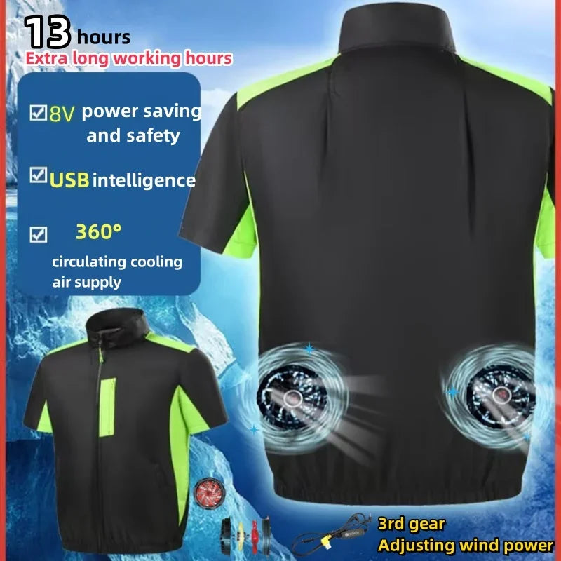 New Cool Vest Men's USB Cooling Fan Short Sleeve Air Conditioning Clothes Heat Protection Labor Protection Welding Work Jacket