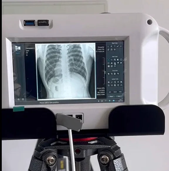 small digital handheld x ray machine is a solution that fits your workplace–no matter what size. Featuring a compact design, the wireless and battery-operated system allows operators to take x-ray images without the dedicated physical space required for a conventional radiographic system. Unlike any other portable x-ray machines, small x ray machine can acquire images directly to the device, allowing operators to review the image first, and then wirelessly transmit to a review PC via the built-in workstation. small digital handheld x ray machine is a stationary X-ray imaging system used to acquire radiographic images of different parts of the human body in a clinical setting Application scope: Limited to X-ray diagnosis of limbs and chest. small x ray machine system is not suitable for mammography Suitable for * Comprehensive diagnostic center * Hospital radiology department * Radiological imaging center * Emergency room * Orthopedic department * Lung diagnosis center * Veterinary hospitals Key Features * Compact design requires minimal space and accommodations * Minimize radiation to patient and operator with lowest possible dose * Maximize day-to-day efficiency with industry-leading battery performance * Begin operation immediately with seamlessly integrated software solution and built-in workstation * No installation or additional equipment required allows for maximized efficiency and productivity * Completely wireless * Superior battery * Performance * Easy medical imaging