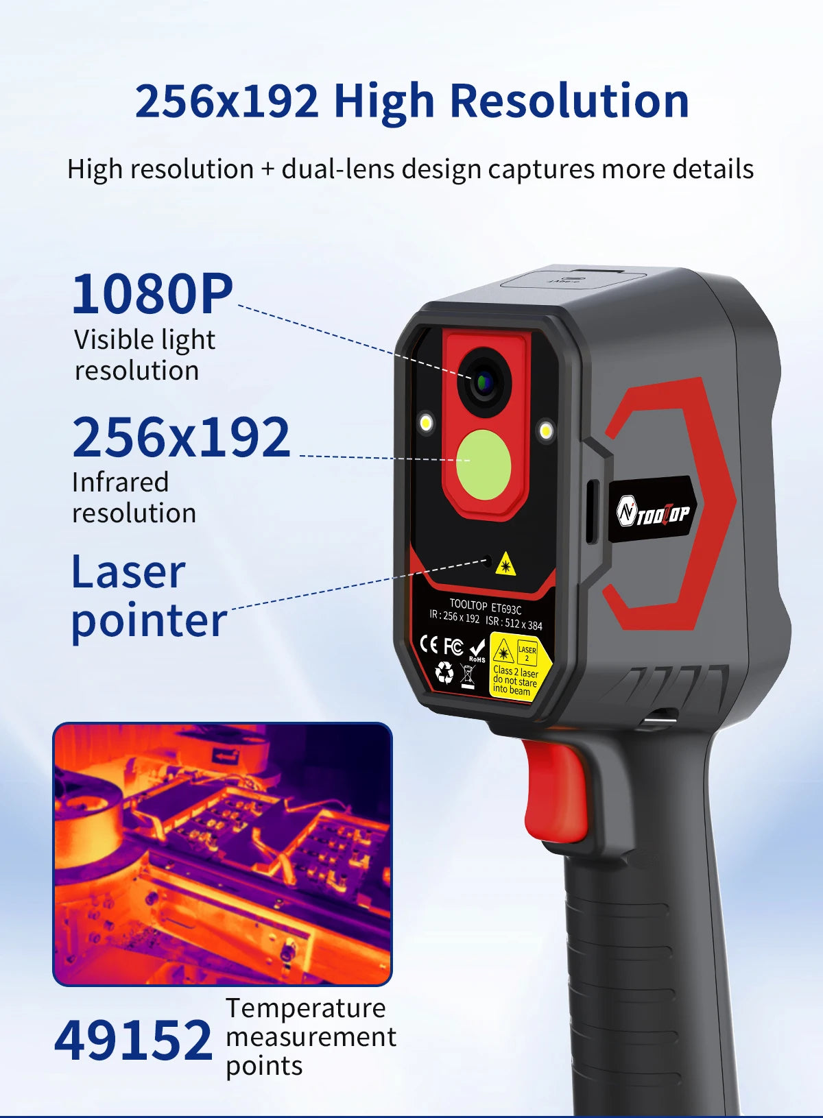 Temperature measurement accuracy:±2℃ or ±2% of reading, whichever is greater