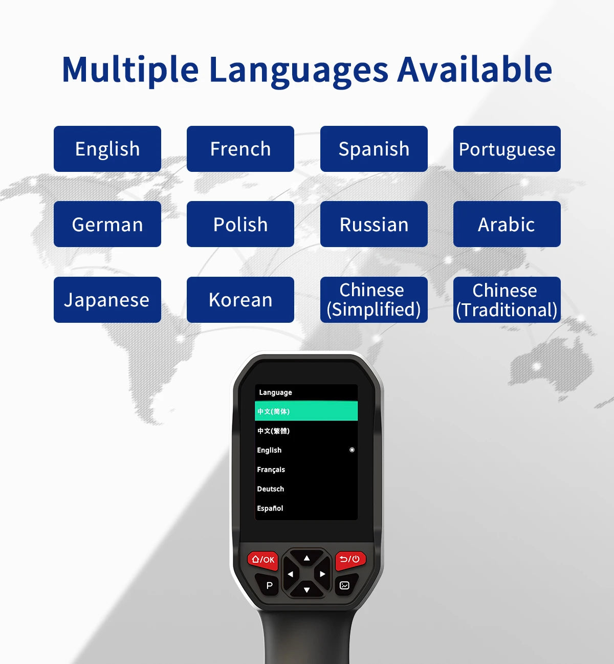 Language: English, French, Spanish, Portuguese, German, Polish, Russian, Arabic, Japanese, Korean and Chinese