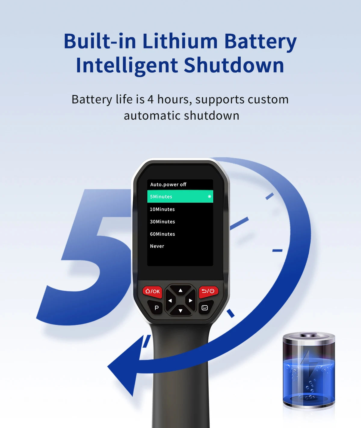 Built-in 2600mAhlithium battery and 8G memory. Support 11 kinds language display.