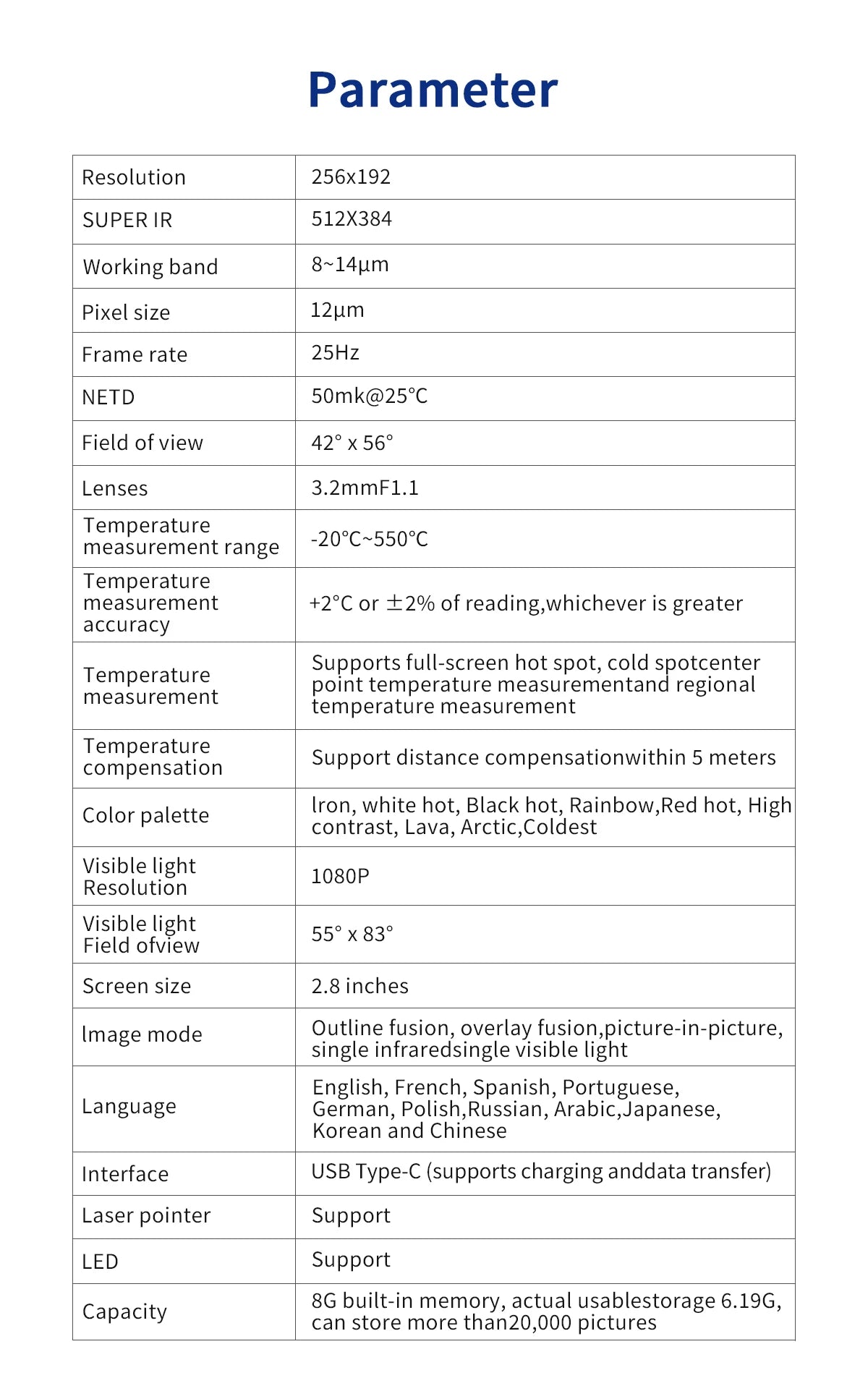 Temperature measurement accuracy:±2℃ or ±2% of reading, whichever is greater