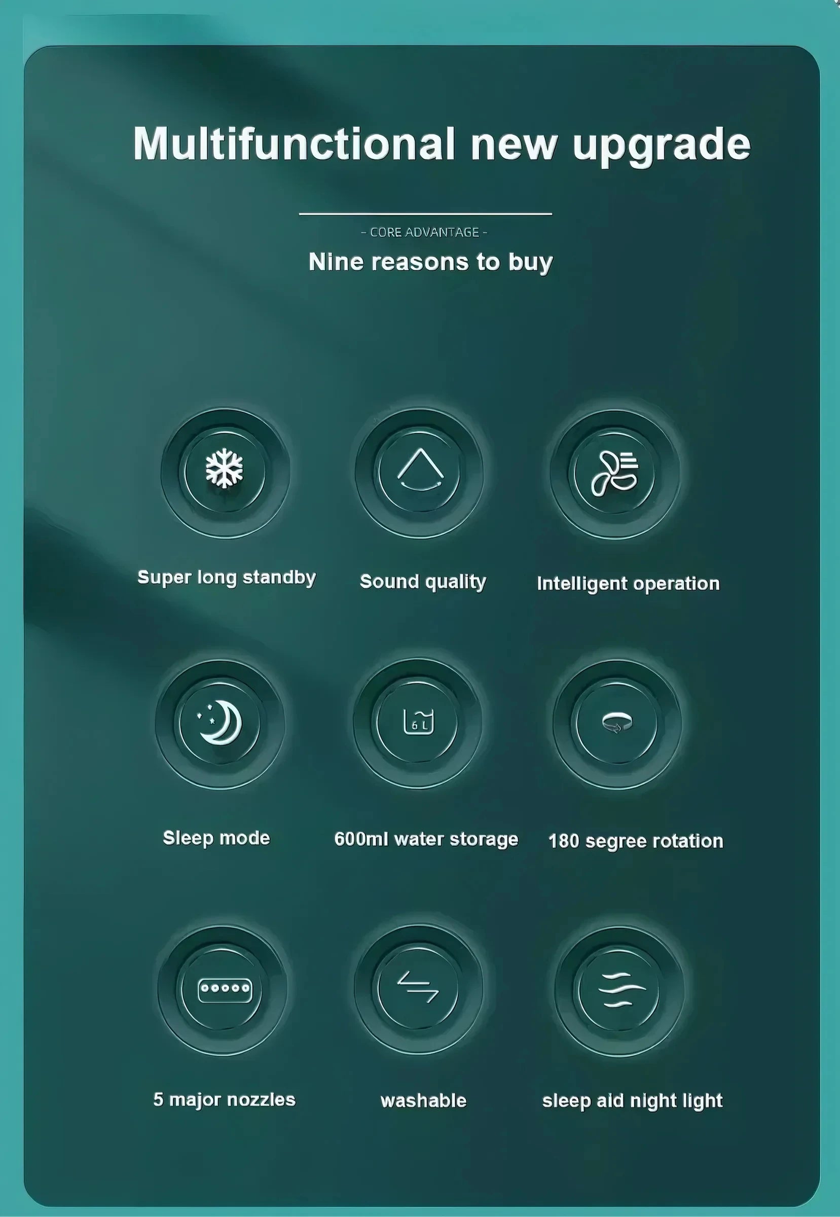Fan portable household three in one small air cooling fan, LED night light, 5-hole humidifier, 1-3 hour timer