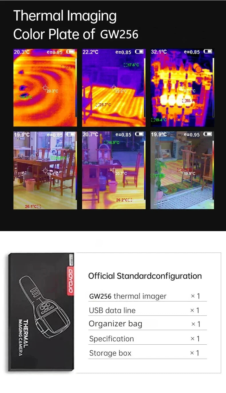 GW256 is a handheld thermal camera that offers a simple, professional, and efficient solution for a wide range of applications. Whether you need to perform electrical diagnosis, home maintenance, mechanical equipment maintenance, construction inspection, or even tasks related to agriculture, forestry, and animal husbandry, the GW256 is designed to meet your needs.