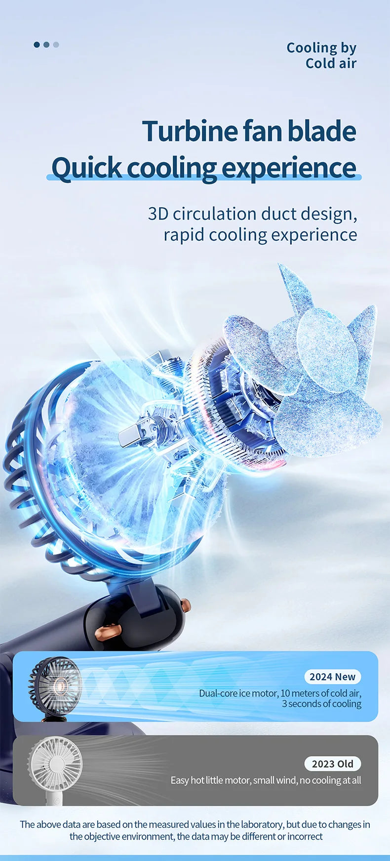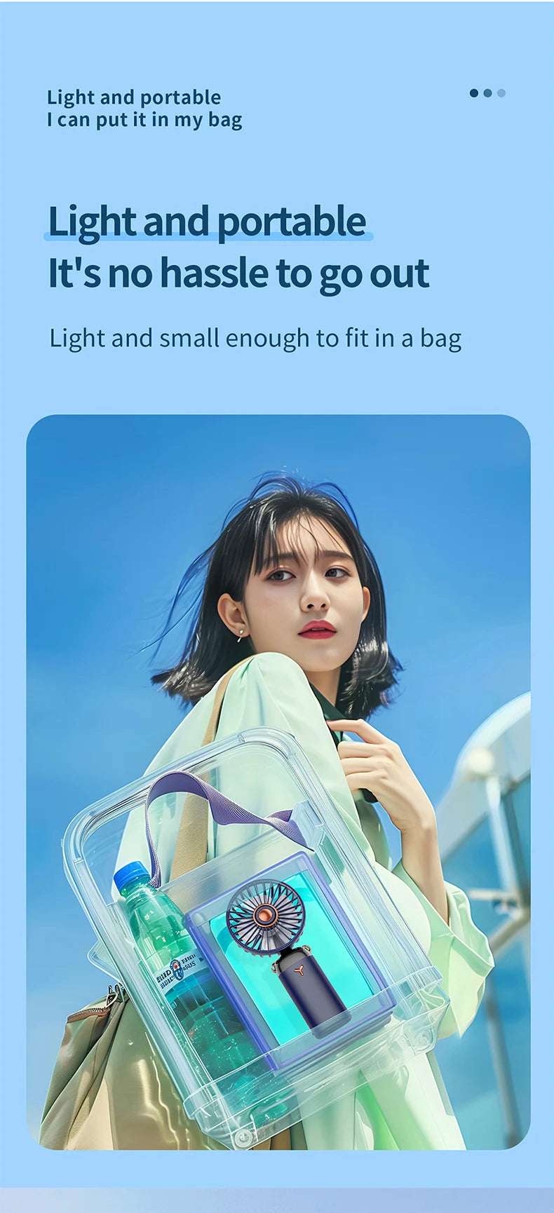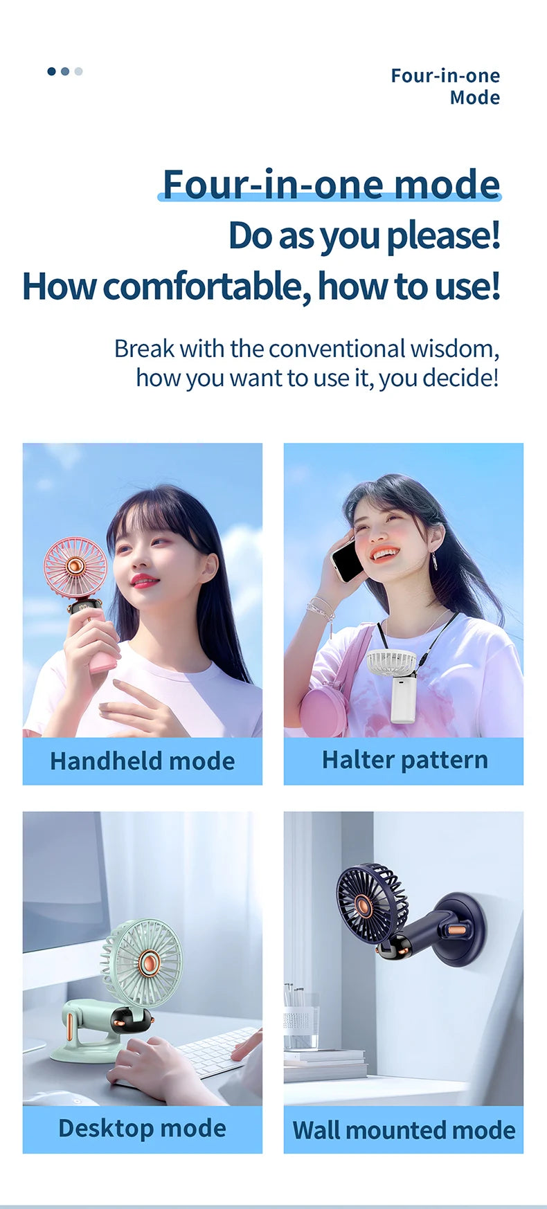 Handheld Mini Fan 3000mAh Foldable Portable Desk Outdoor Neck Hanging 5 Speed USB Rechargeable Fan Phone Stand Display Screen