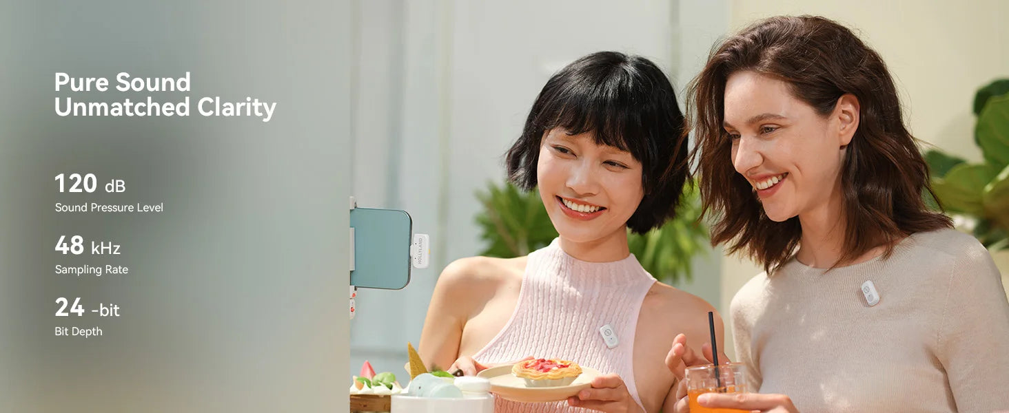 ● 48kHz/24-bit Studio-Grade Wireless Microphone: Handles sudden 120dB SPL noises without distortion, capturing crisp highs and deep lows—ideal for vloggers, streamers, and creators using a mini microphone for cinematic audio.