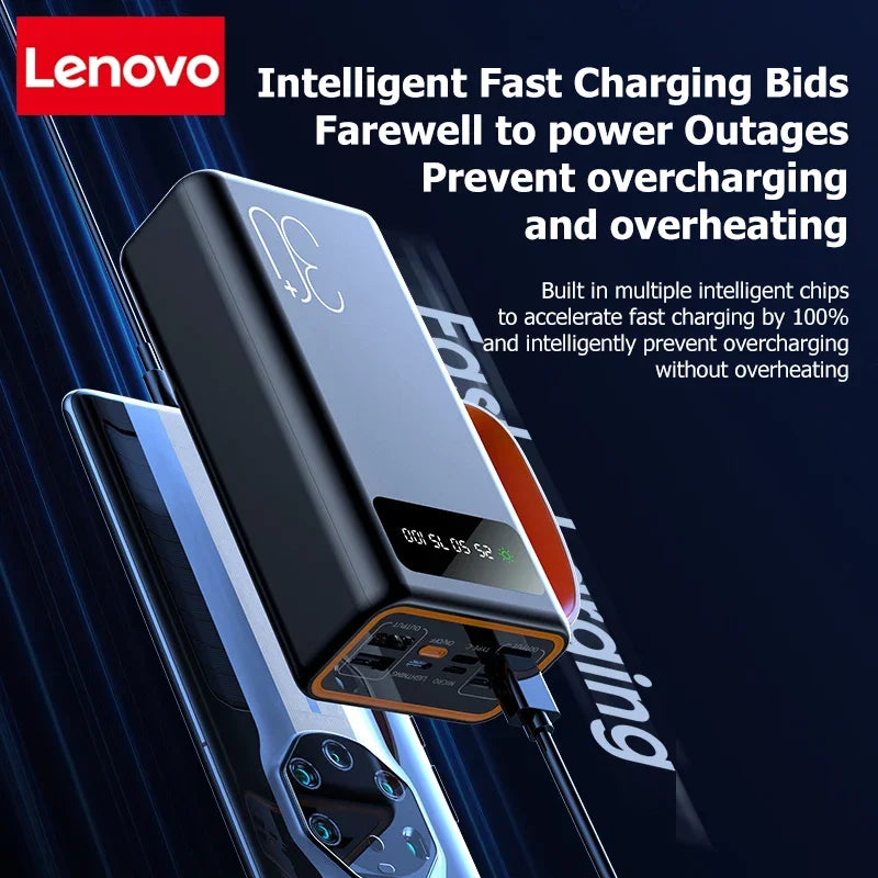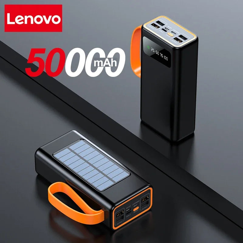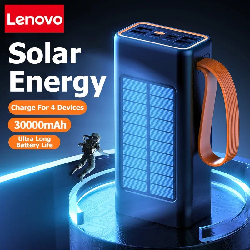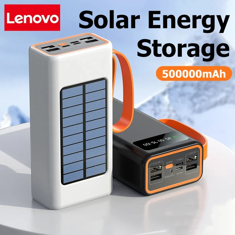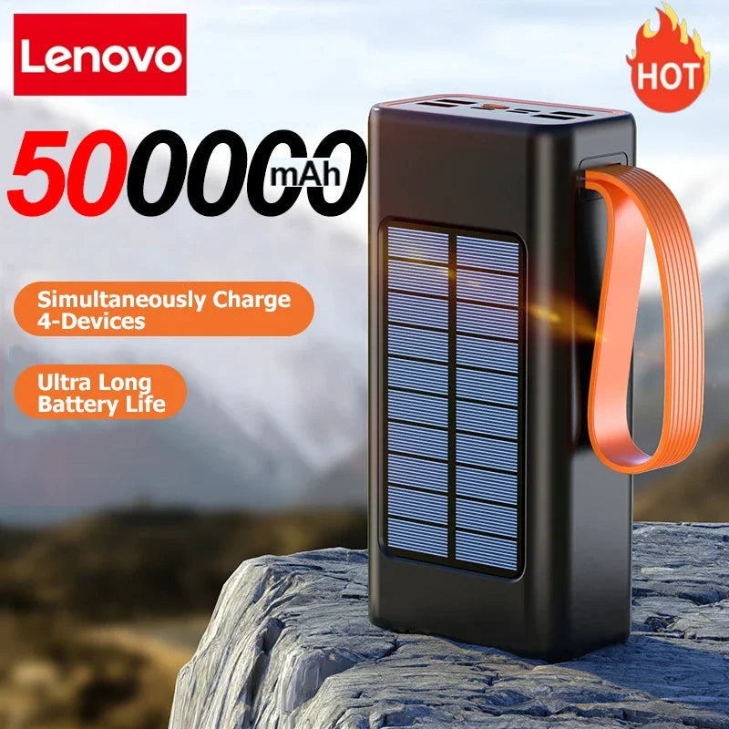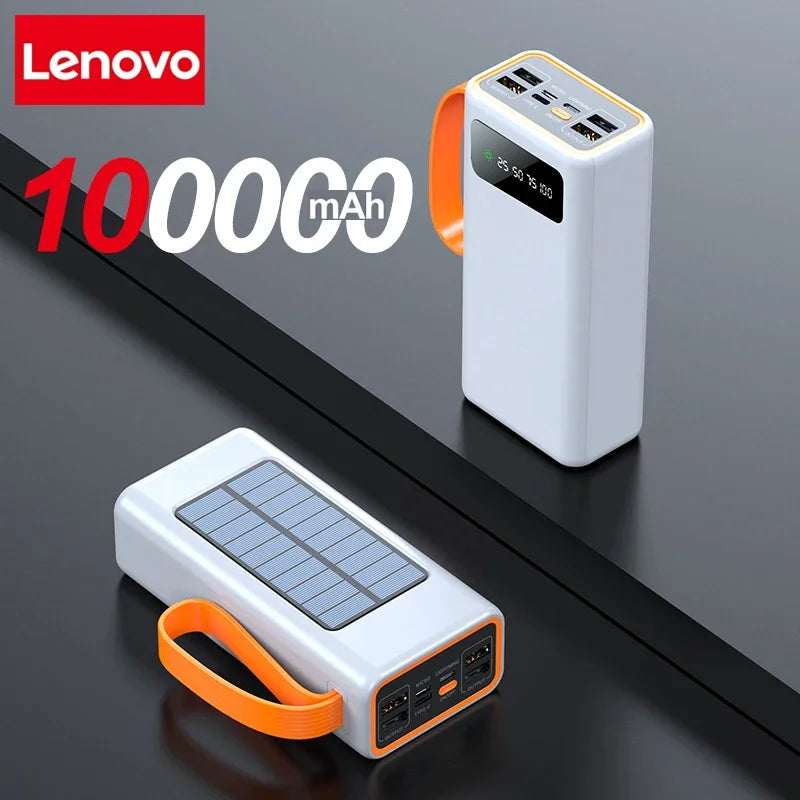 Lenovo 100000mAh Thicken Solar Power Bank Ultra capacity Built-in Cables External Battery LED Light Power Bank For iPhone Xiaomi