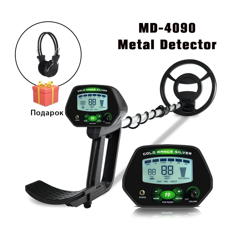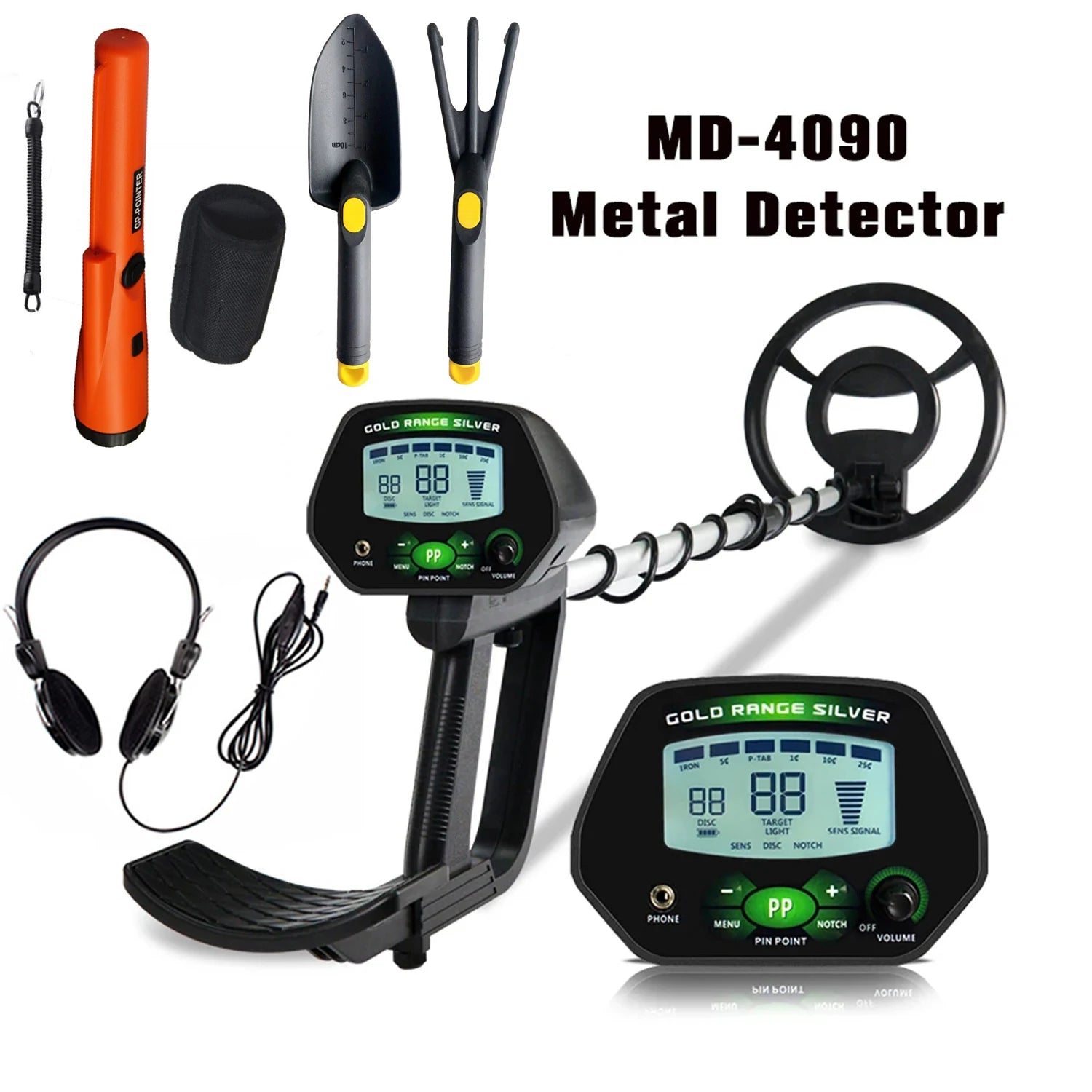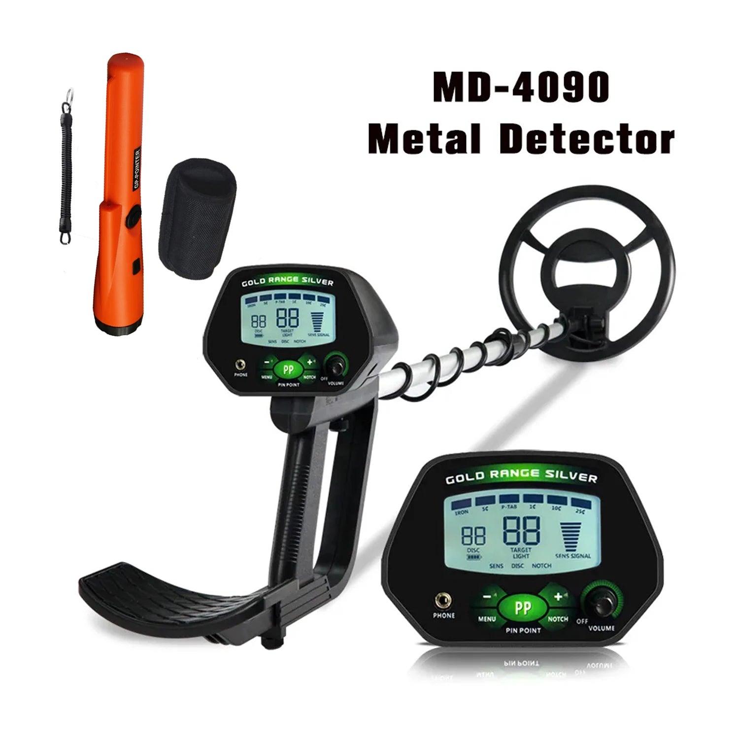 Metal Detector MD4090 for Adults with 10''IP68 Waterproof High Accuracy Search Coil , All Metal & Disc & Notch & Pinpoint Modes