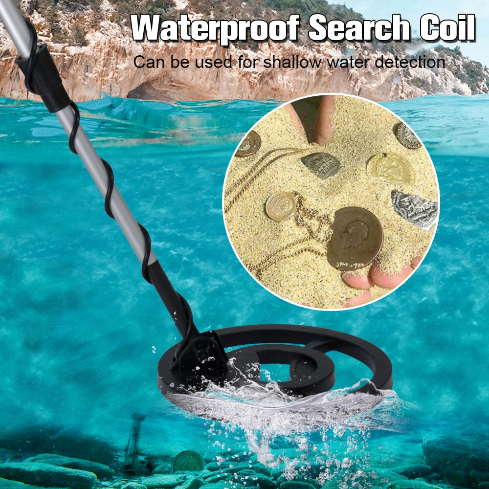 【Large Waterproof Coil】- The metal detector comes with a 10'' waterproof search coil, used for the