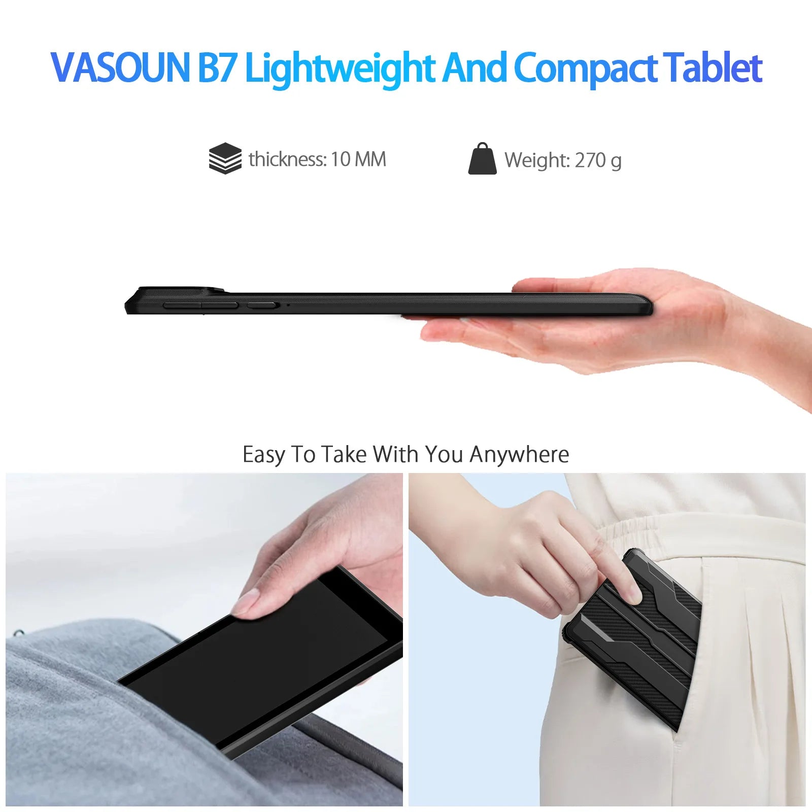 【Slim and Lightweight Design】The tablets is a fashion statement in itself. 7" and in thin design which is in the perfect blend of form and function. Slim, sleek, and ready to impress! Slip the tab into your bag or pocket—its thin design and lightweight construction make it the perfect accessory for any occasion.