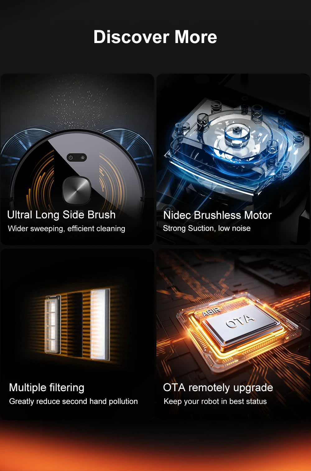 Precision Cleaning: Dual LIDAR and smart algorithms ensure complete coverage of every inch of your home.