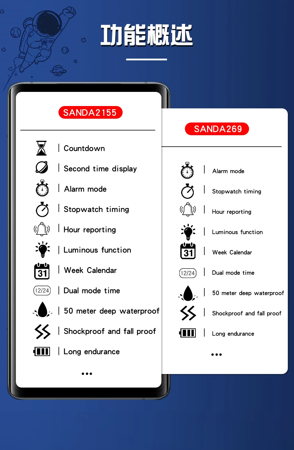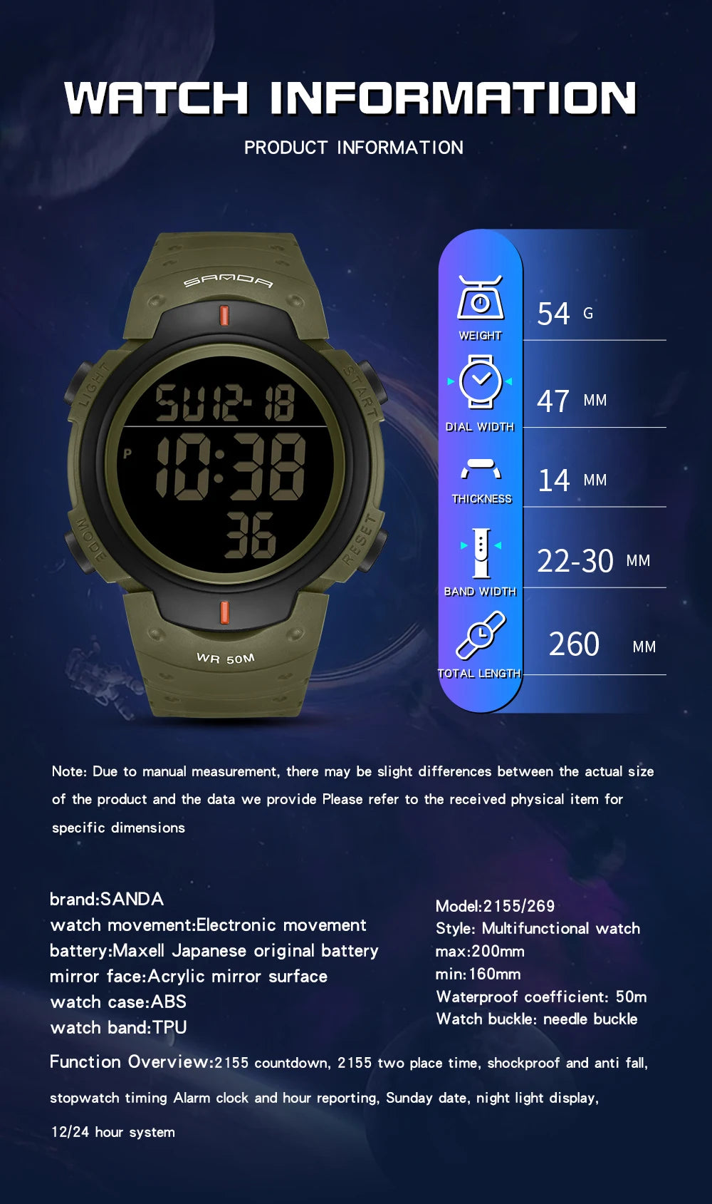 SANDA Fashion Military Men's Watches Waterproof Outdoor Sports Watch For Male LED Electronic Digital Wristwatches Relogio
