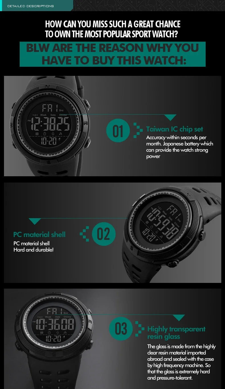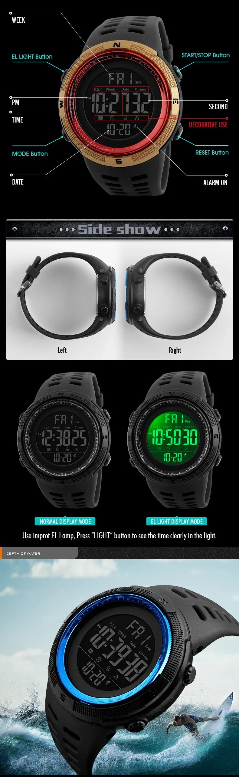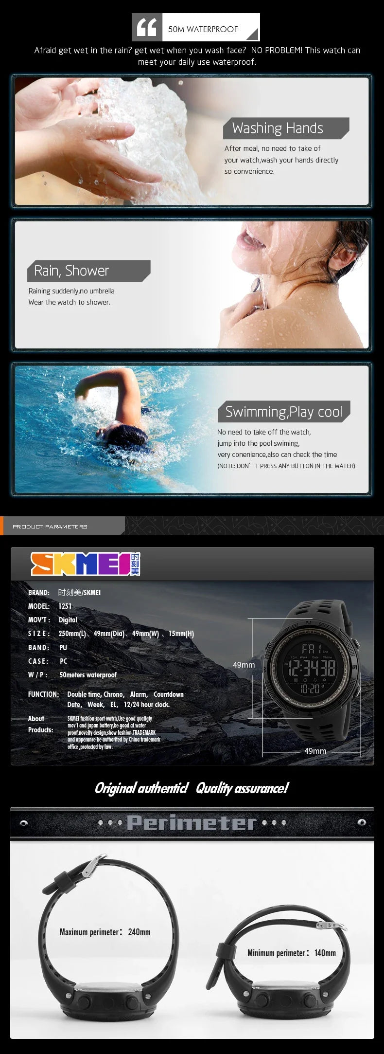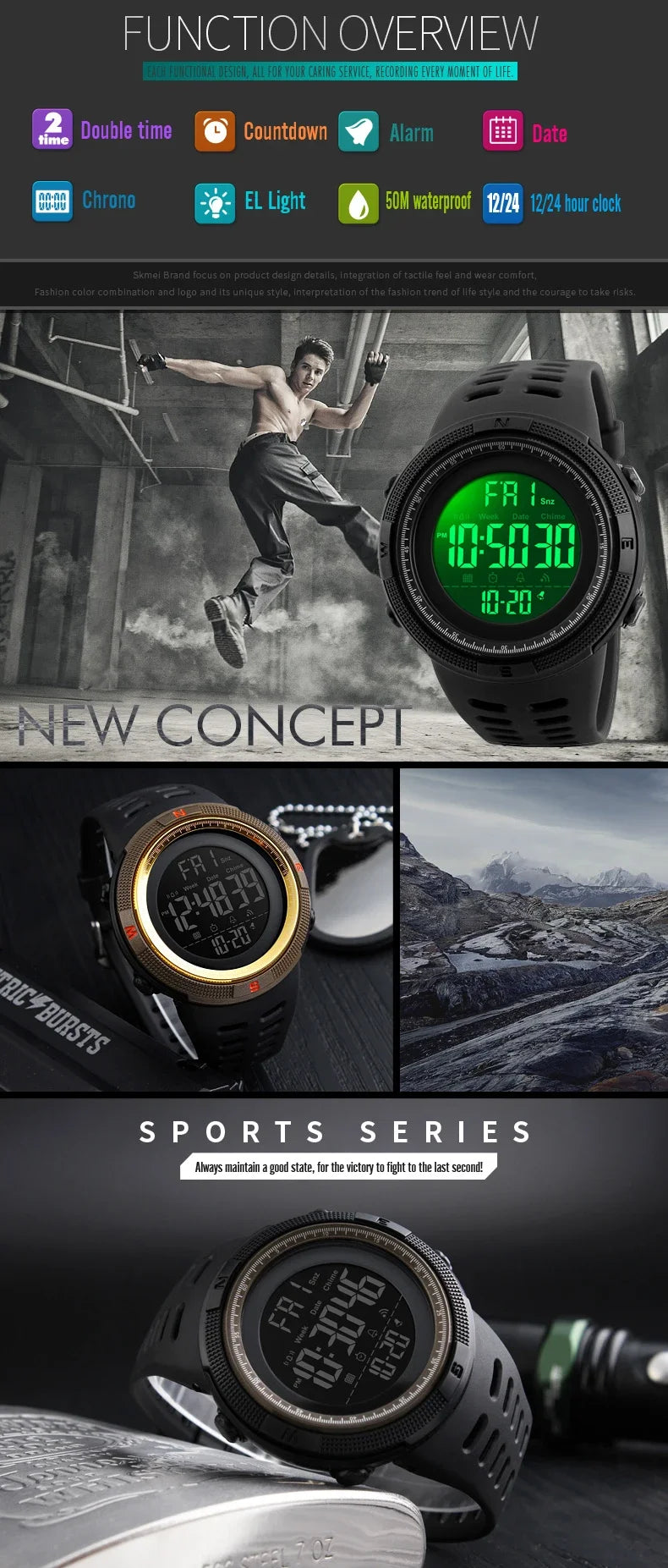 SKMEI 1251 Outdoors Waterproof digital Mens Watches Sport Men Watches Countdown Electronic Wrist Watch Military Reloj Masculino