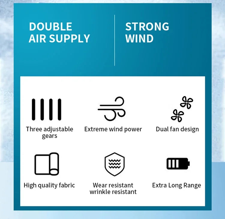 Three-speed speed regulation circulation air supply, breathable fabric wear-resistant and anti-wrinkle, micro-pore perspiration for a healthy cooling.