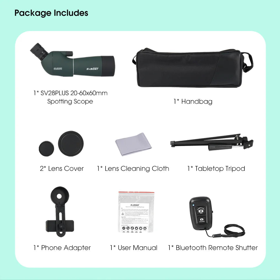 SV28PLUS Birdwatching Scope with Mobile Phone Adapter BAK4 FMC For Wildlife & Archery