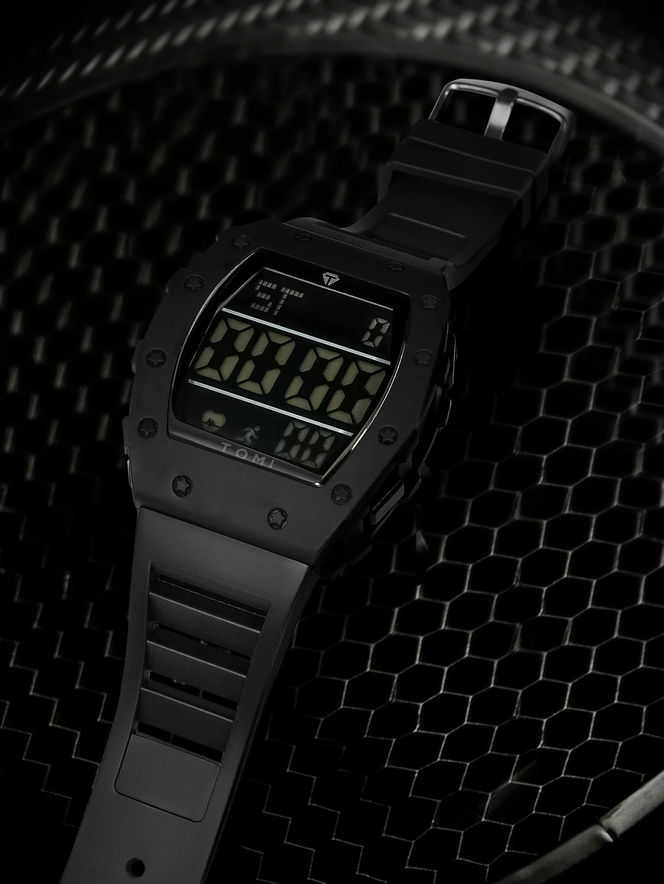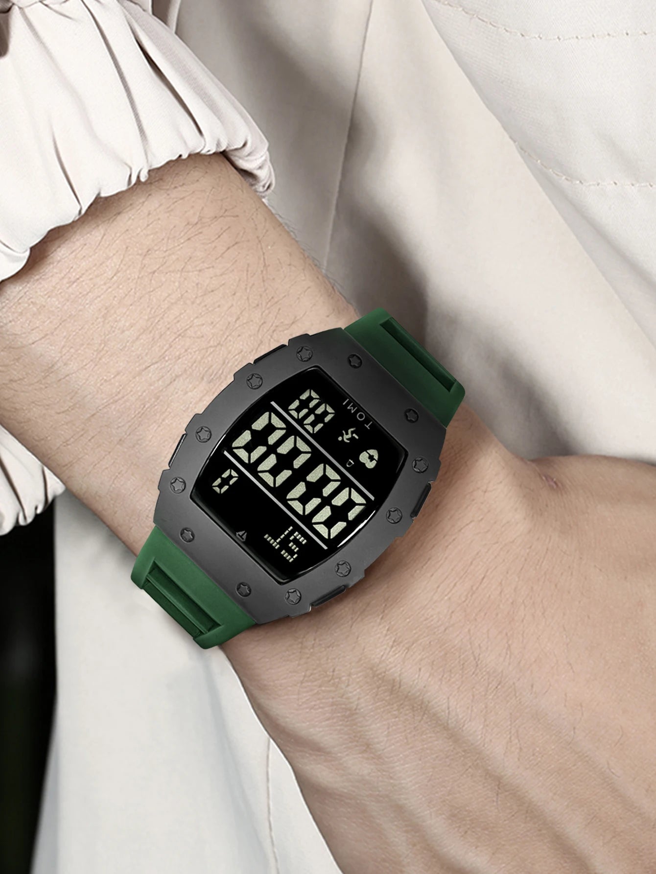 TOMI Men's LED Digital Watch Wine Barrel Multi functional Watch Men's Outdoor Waterproof Fitness Sports Watch Student Clock